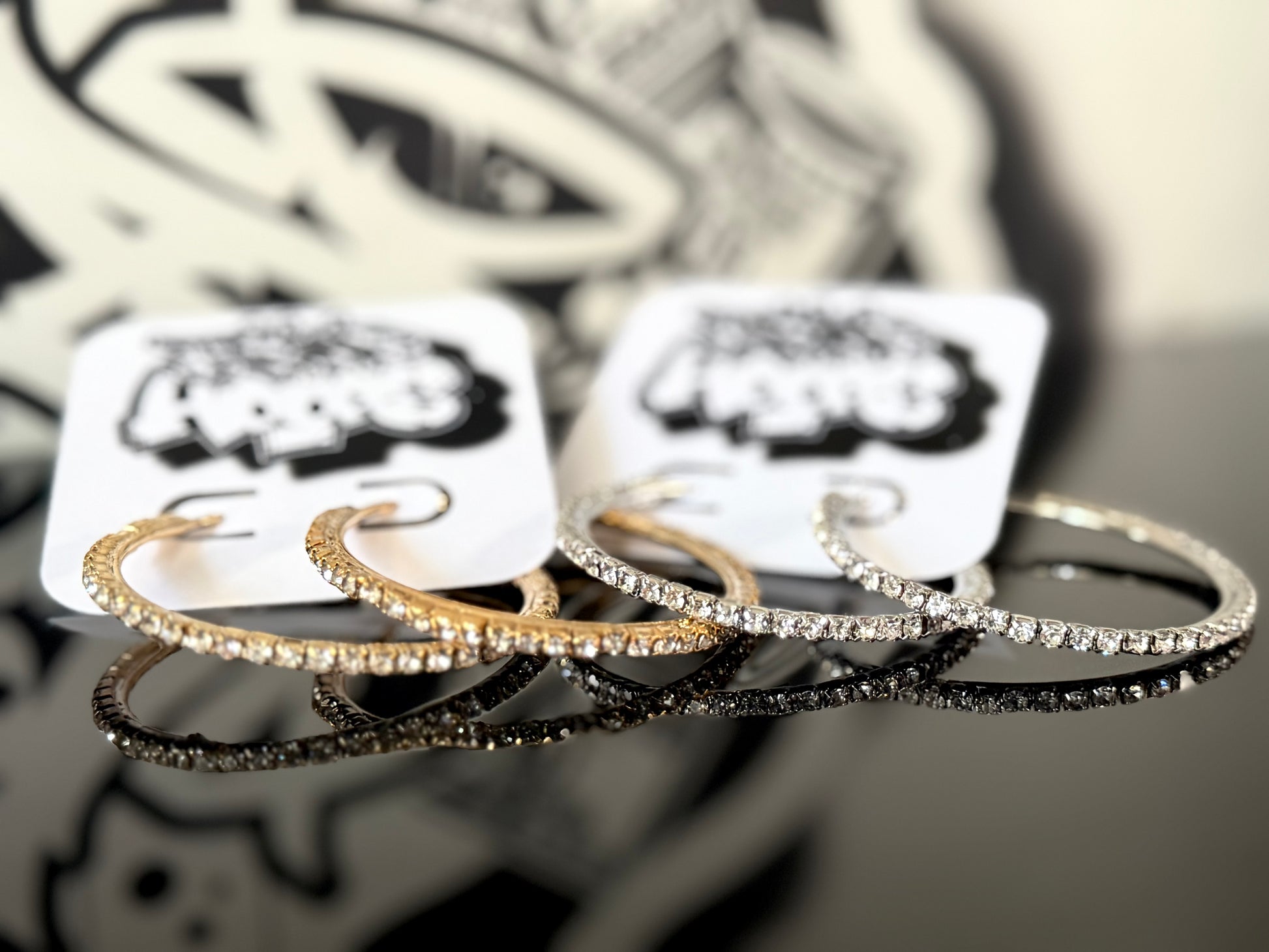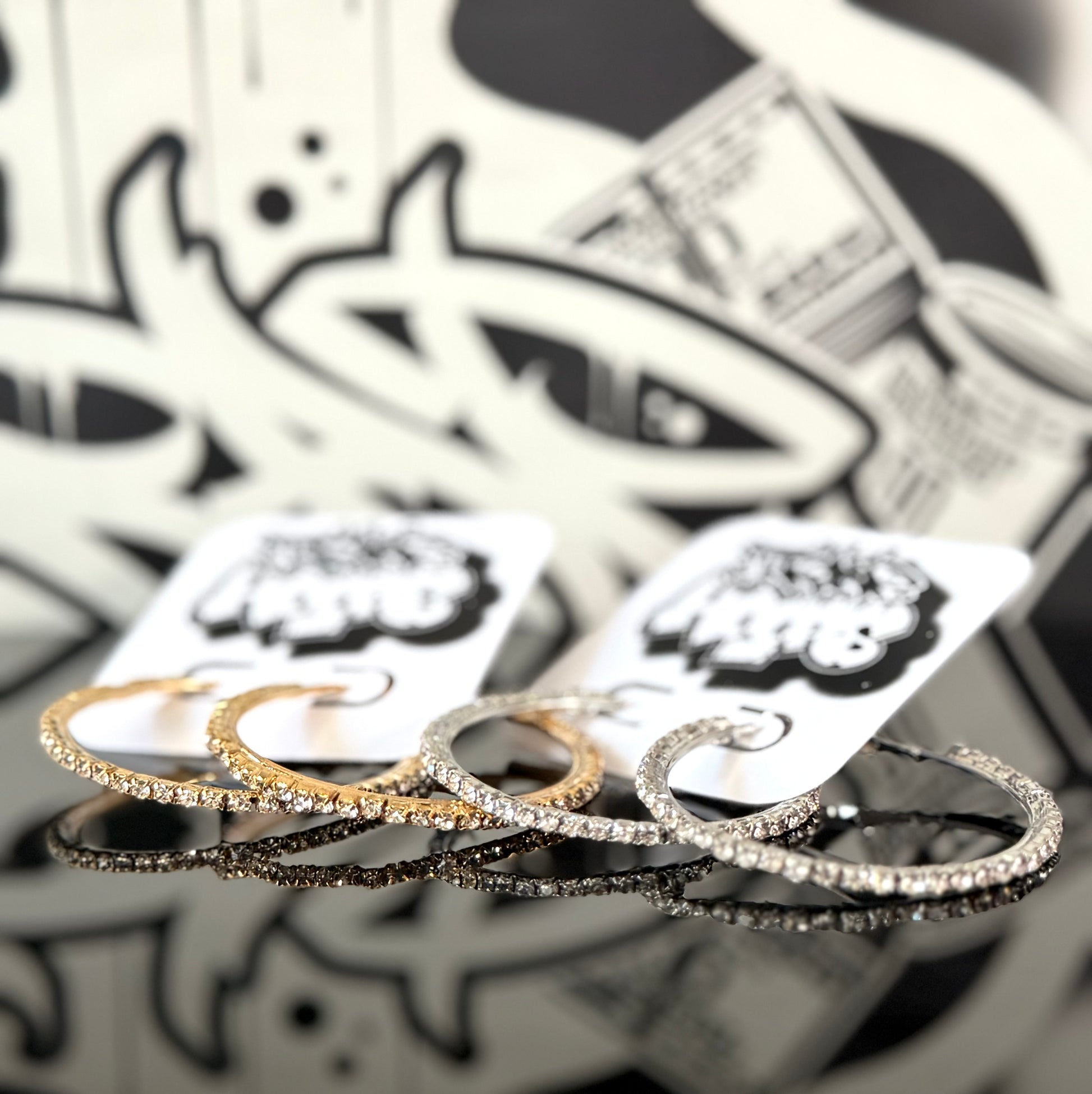 Add some sparkle to your style with GLITZ! These 20mm small hoop earrings are adorned with tiny rhinestones, adding a touch of glamour to any outfit. (And a little bling never hurt anyone!)