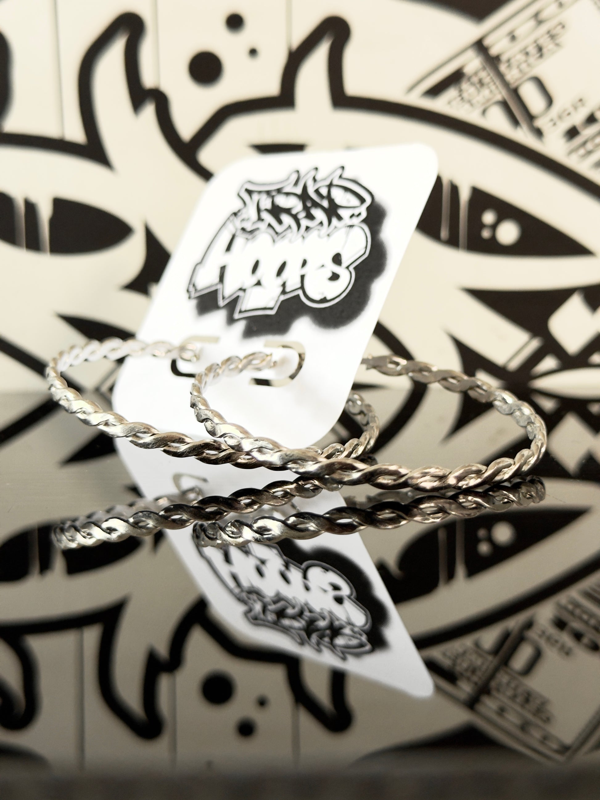 "Add some street style to your look with TRAPPIN’ the 40mm medium size hoop earrings with a unique chain design. Perfect for those who want to show their playful side while staying stylish. (You'll be turning heads for all the right reasons!)"